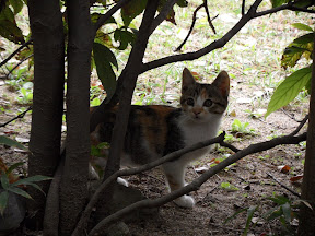 Again, I was pretty much by myself aside from a few sparrows chirping in the trees and some feral-looking cats in the bushes. It was true that the garden had seen better days, the year was drawing to a close and those plants that didn't have their leaves battered off by mischievous birds were looking as if they were about to shed them anyway. The garden, covered on all sides by a blanket of trees contained a traditional Japanese house house which overlooked the pond and jutted out over it on long stilts. At the side was the entrance, an alcove where a woman was waiting patiently for me to decide what I was doing. She motioned me to take off my shoes before I could enter.